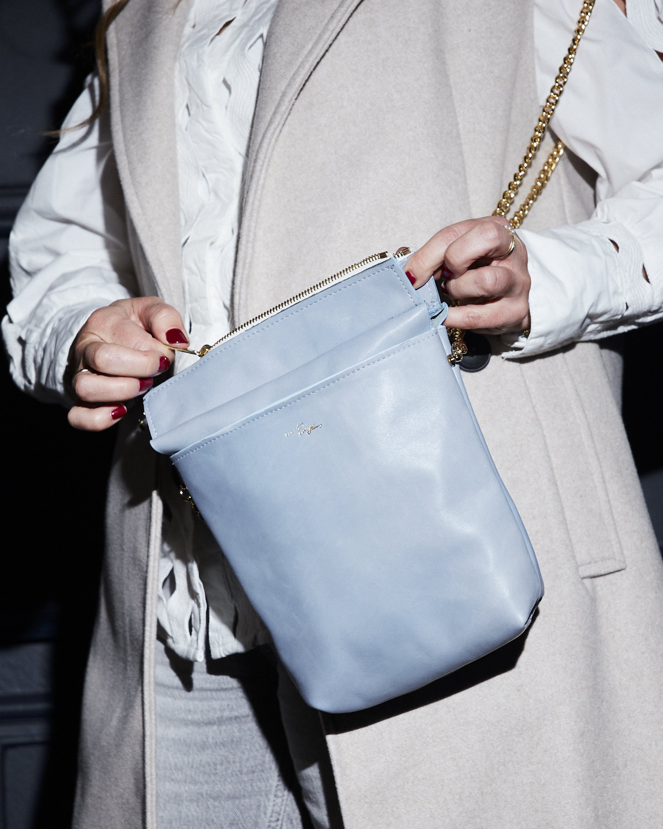 I design and create the bags in my home atelier. Through pure craftsmanship, each bag remains unique. I love vibrant and practical styles that are distinctive due to my own designs. For every bag, I use the finest high-quality materials and the most beautiful hardware. The careful finishing adds the perfect final touch to each bag.